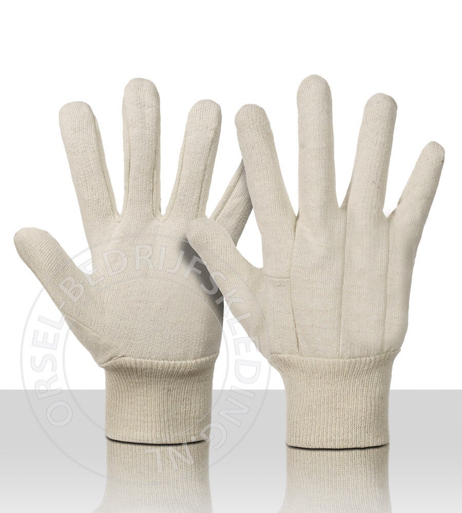 100% katoenen Jersey handschoen kleur ecru met tricot boord.
